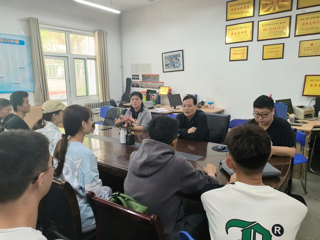 9月21日,电子信息学院党委书记杨友谊、副书记周晓惠和年级辅导员在临潼校区学生公寓9号楼一站式学生服务中心慰问2021级、2022级全体承训教官。