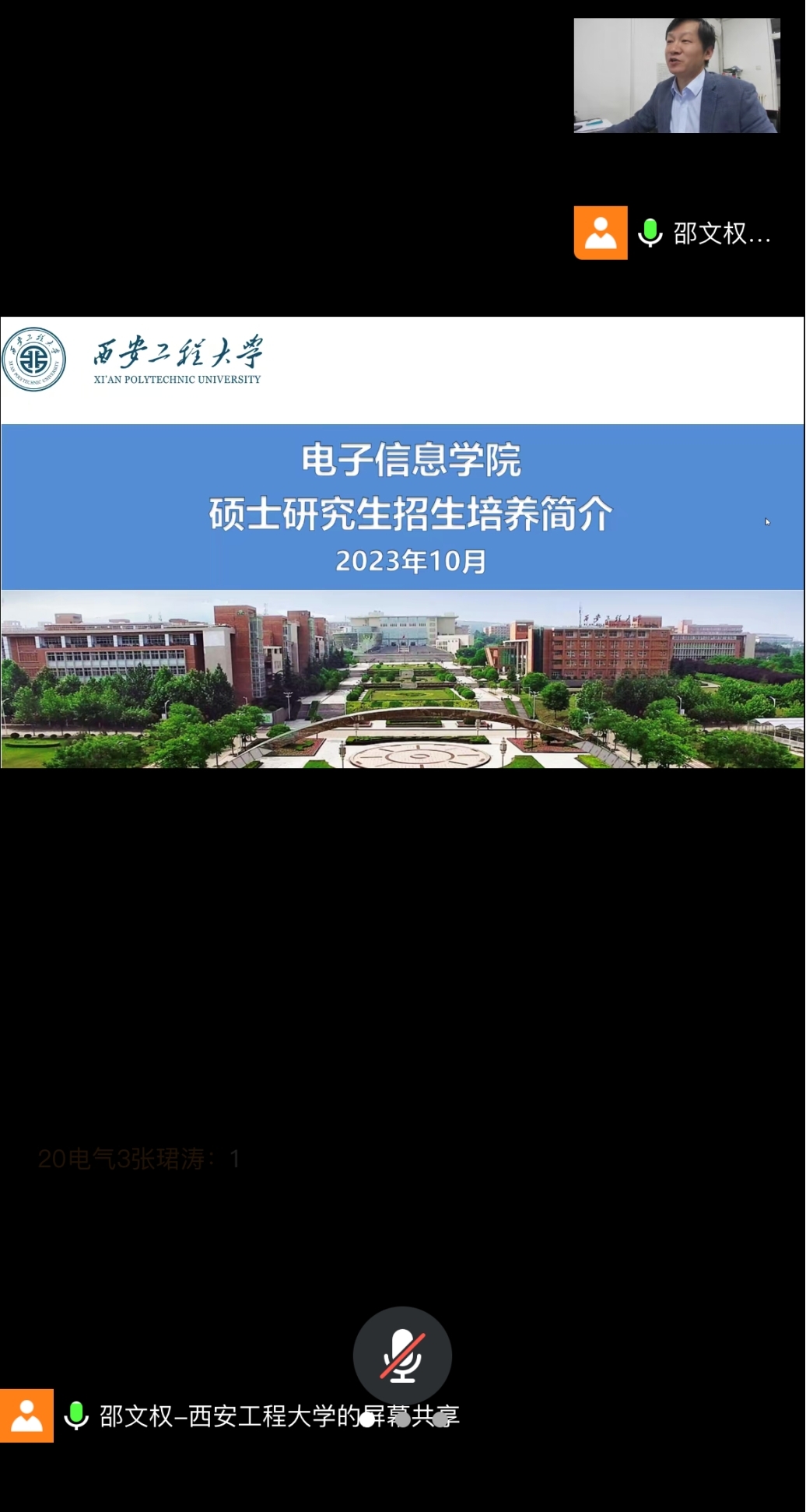 10月13日晚7:00,为帮助考生更好地了解电子信息学院研究生招生政策、招生专业情况,展示学院优势和专业特色,吸引更多优秀学子关注和报考,我院和宝鸡文理学院联合举办了线上网络研究生招生宣讲活动。电信学院电气学科负责人邵文权教授,青年教师张博博士、研究生秘书行露老师和宝鸡文理学院三、四年级有考研意向的同学参加了线上会议。
