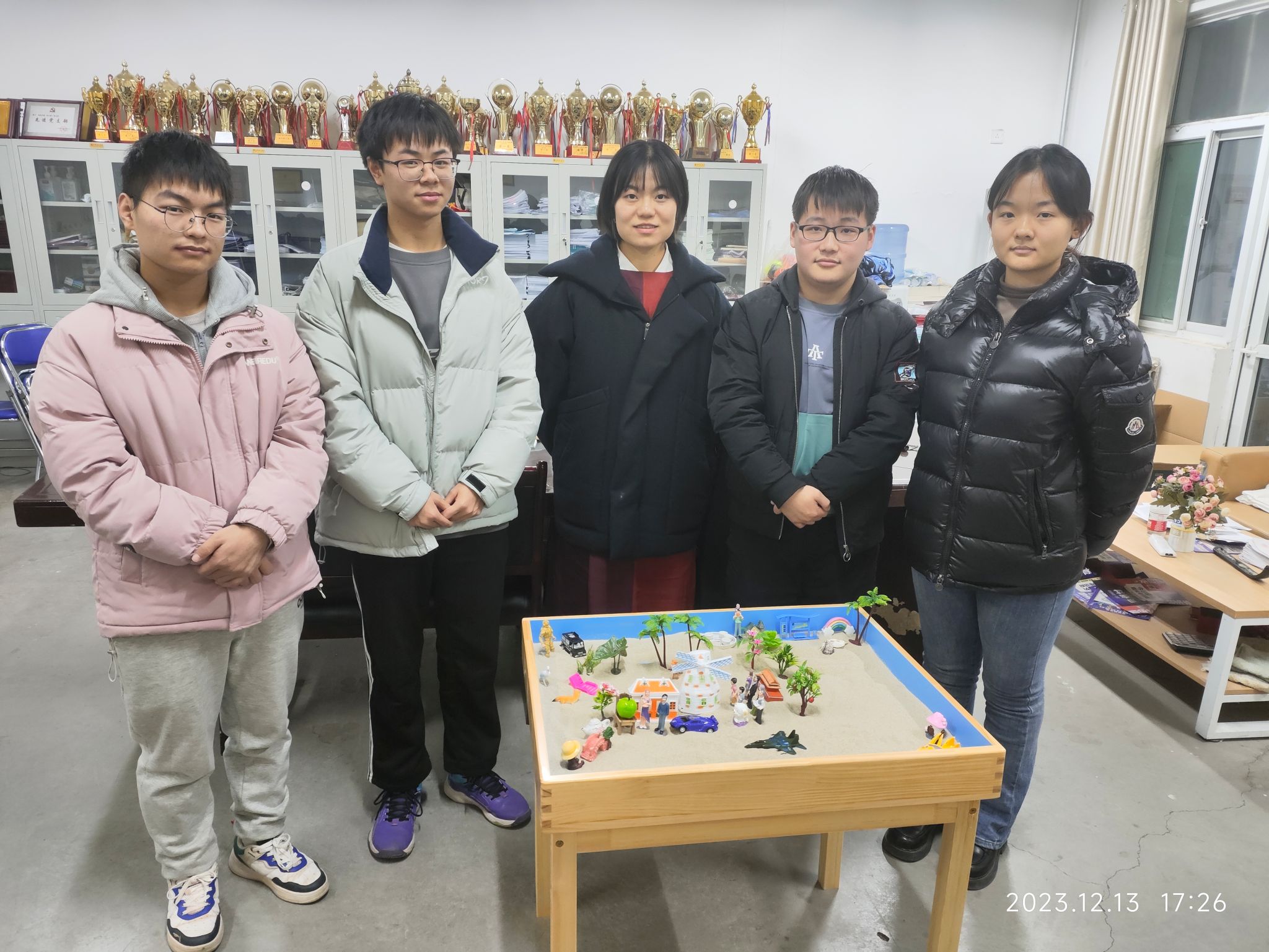 12月13日,电子信息学院邀请校心理中心马海蓉老师在9号楼“一站式”学生社区开展了心理沙盘团辅活动。