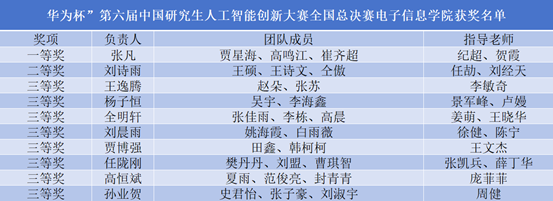 再突破!电子信息学院研究生在“华为杯”第六届中国研究生人工智能创新大赛中获国家一等奖