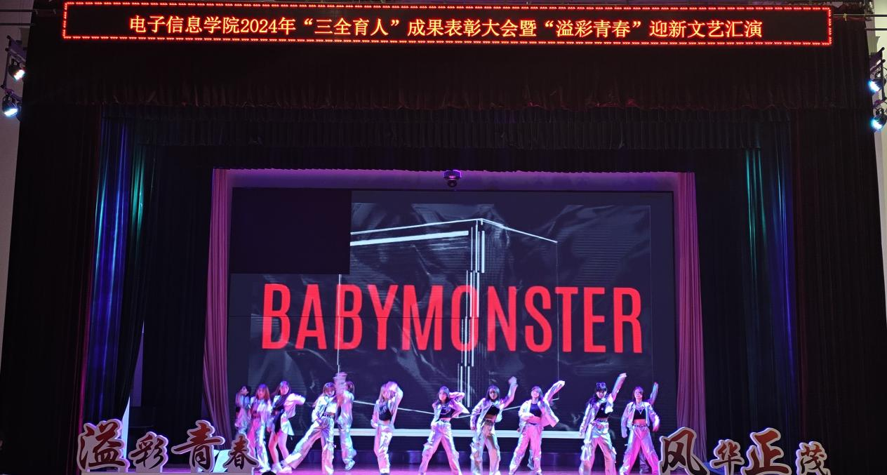 “溢彩青春”迎新文艺汇演中,同学们以歌舞、京剧、民乐演奏、乐队演奏等形式展现了电信学子蓬勃向上的青春朝气。张雨乐等同学表演的舞蹈节目《batter up》灵动昂扬,表现出年轻人的青春朝气;2024级辅导员杨松然,胡颖的歌舞表演《万疆》,为庆祝新中国成立75周年献礼,共同祝愿祖国山河锦绣,国泰民安。