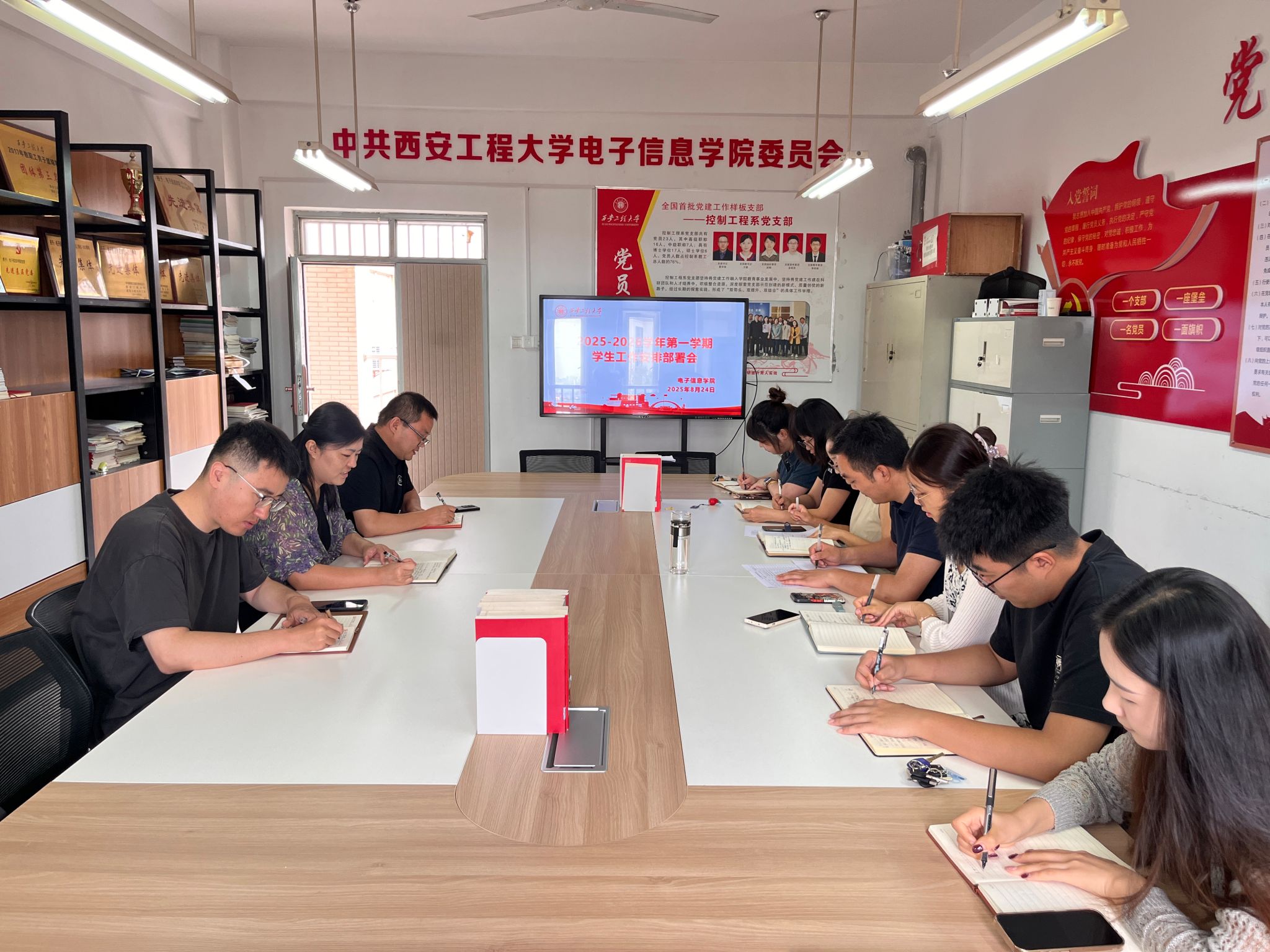 8月24日上午,电子信息学院在电信楼416召开了新学期学生工作部署会,院党委副书记周晓惠主持,全体辅导员参加会议。
