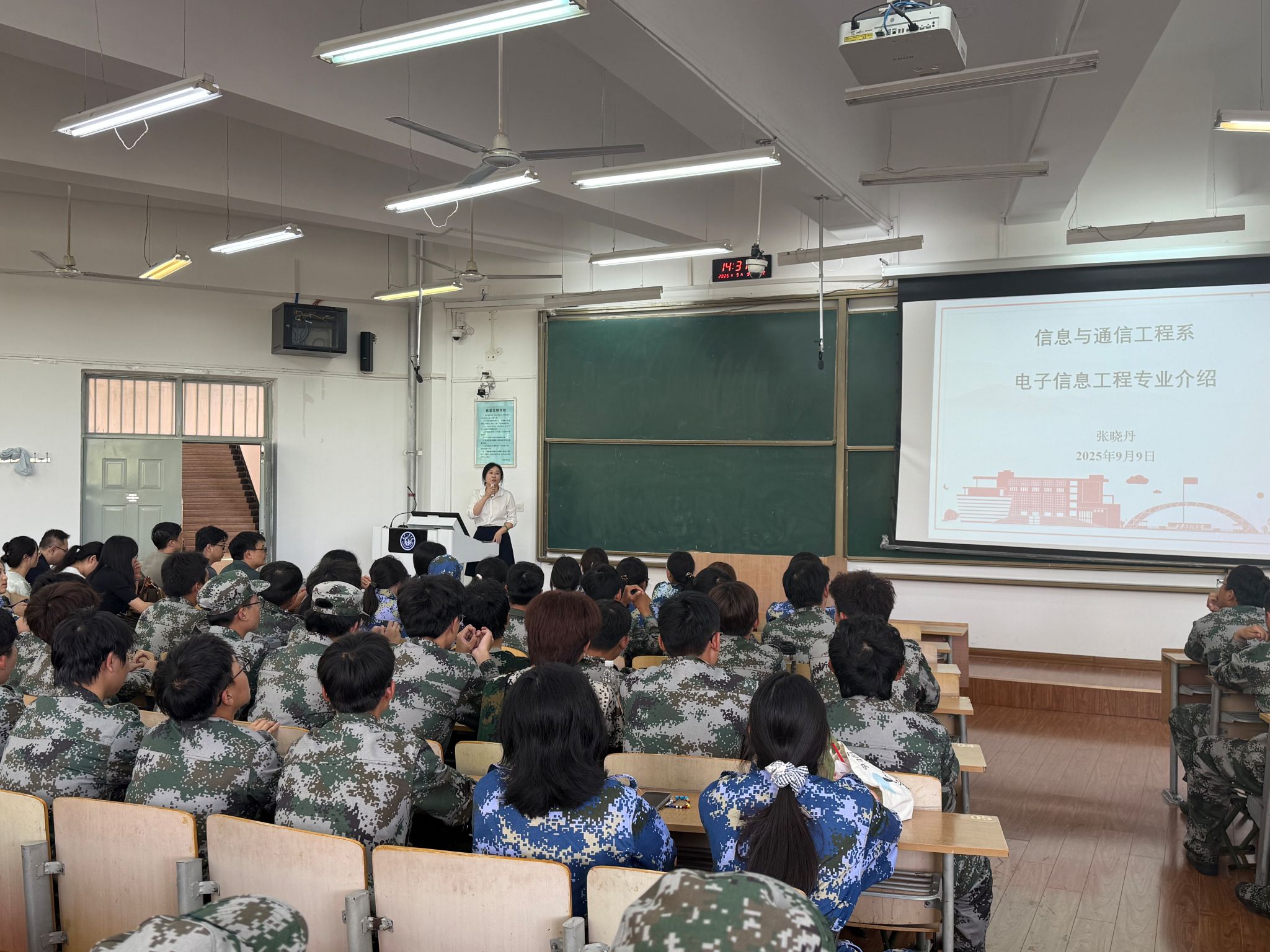 会上,院长景军锋对学院及各专业基本情况进行介绍,回顾了电子信息学院的发展历程,介绍了学院专业建设情况、师资力量、教学资源、就业选择、人才培养成果以及各方面的优势性进展,并对2025级的同学们提出三点希望:一是做好角色转换,尽快适应大学生活;二是夯实专业基础,培养创新能力;三是积极参与实践,担当时代重任。