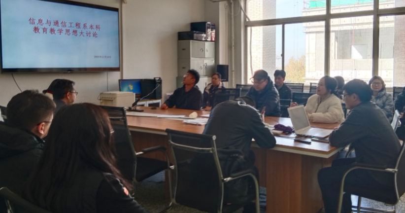 根据学校《关于组织学院(部)开展本科教育教学思想大讨论活动的通知》和《关于进一步加强教育教学思想大讨论工作的通知》精神,以及电子信息学院本科教育教学思想大讨论计划安排,2025年11月19日下午,电子信息学院信息与通信工程系在电信楼302开展了本科教育教学思想大讨论活动。信息与通信工程系主任张晓丹老师、电子信息工程专业负责人赵瑞老师、通信工程专业负责人张利剑老师等20人参与本次会议,会议由郭华老师主持。