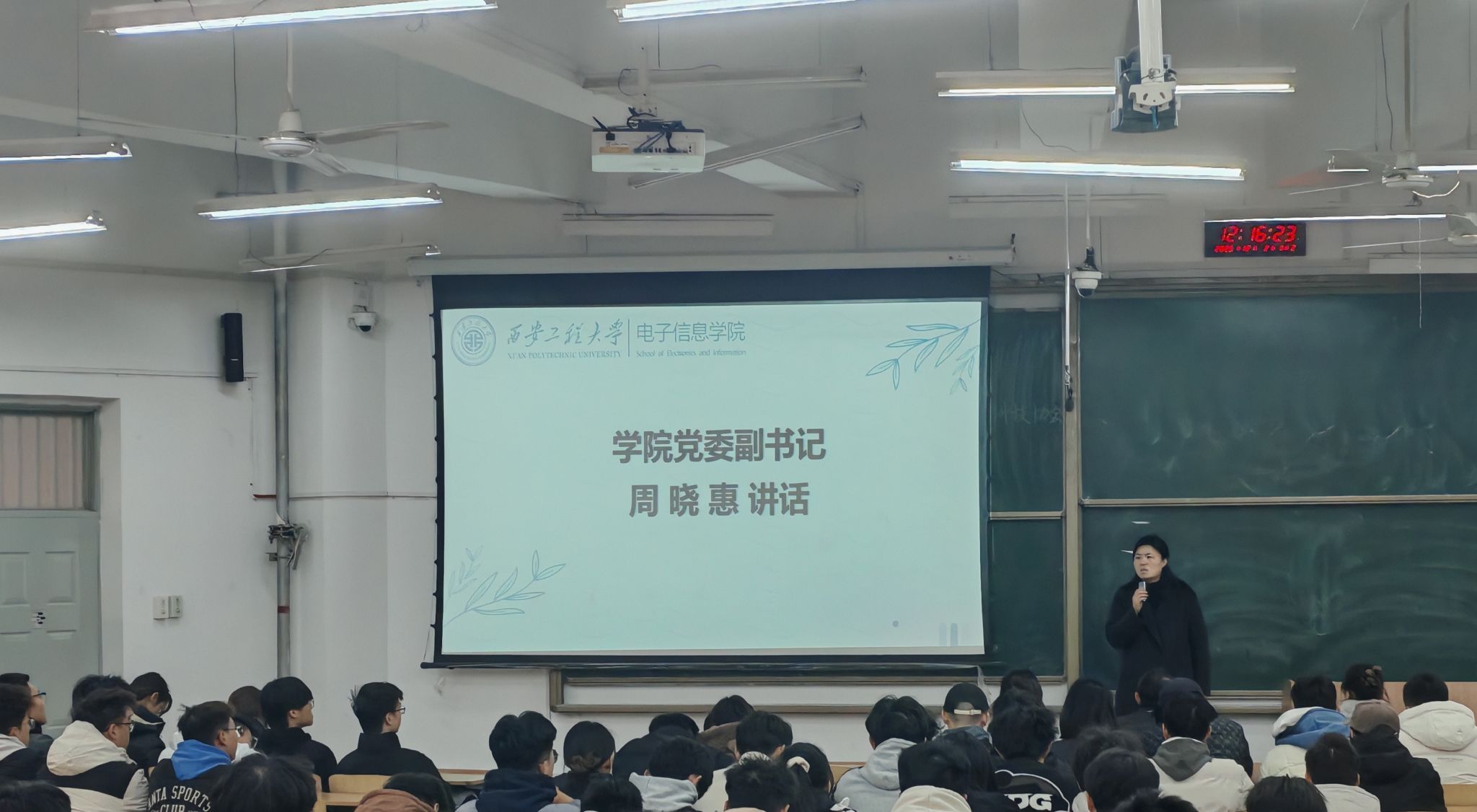 周晓惠着重强调了学生干部的带头示范作用,明确诚信考试动员会是筑牢考风考纪防线的关键举措。她要求学生干部既要严守考试纪律、以身作则,更要切实履行责任,将纪律要求准确传达至班级每一位同学;同时叮嘱全体学生在期末及四六级考试中摒弃侥幸心理,坚决抵制作弊行为,守住诚信底线。