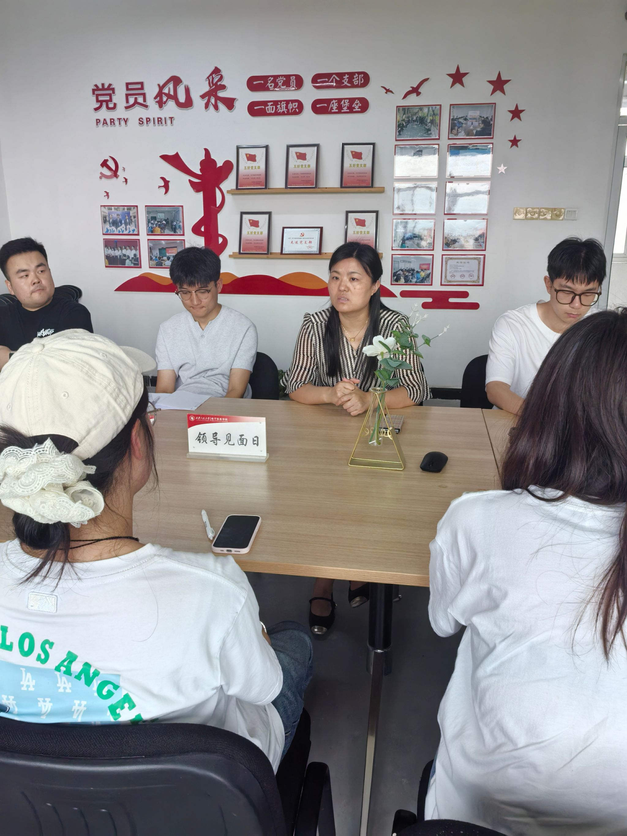 交流中,院领导不仅耐心解答学业困惑,还分享个人经历与思考,让学生感受到“被看见、被关心”。许多同学表示:“领导们来到我们中间,听我们说话,为我们答疑,心里觉得特别暖,也让我们对专业学习和未来规划更加清晰、更有信心。”