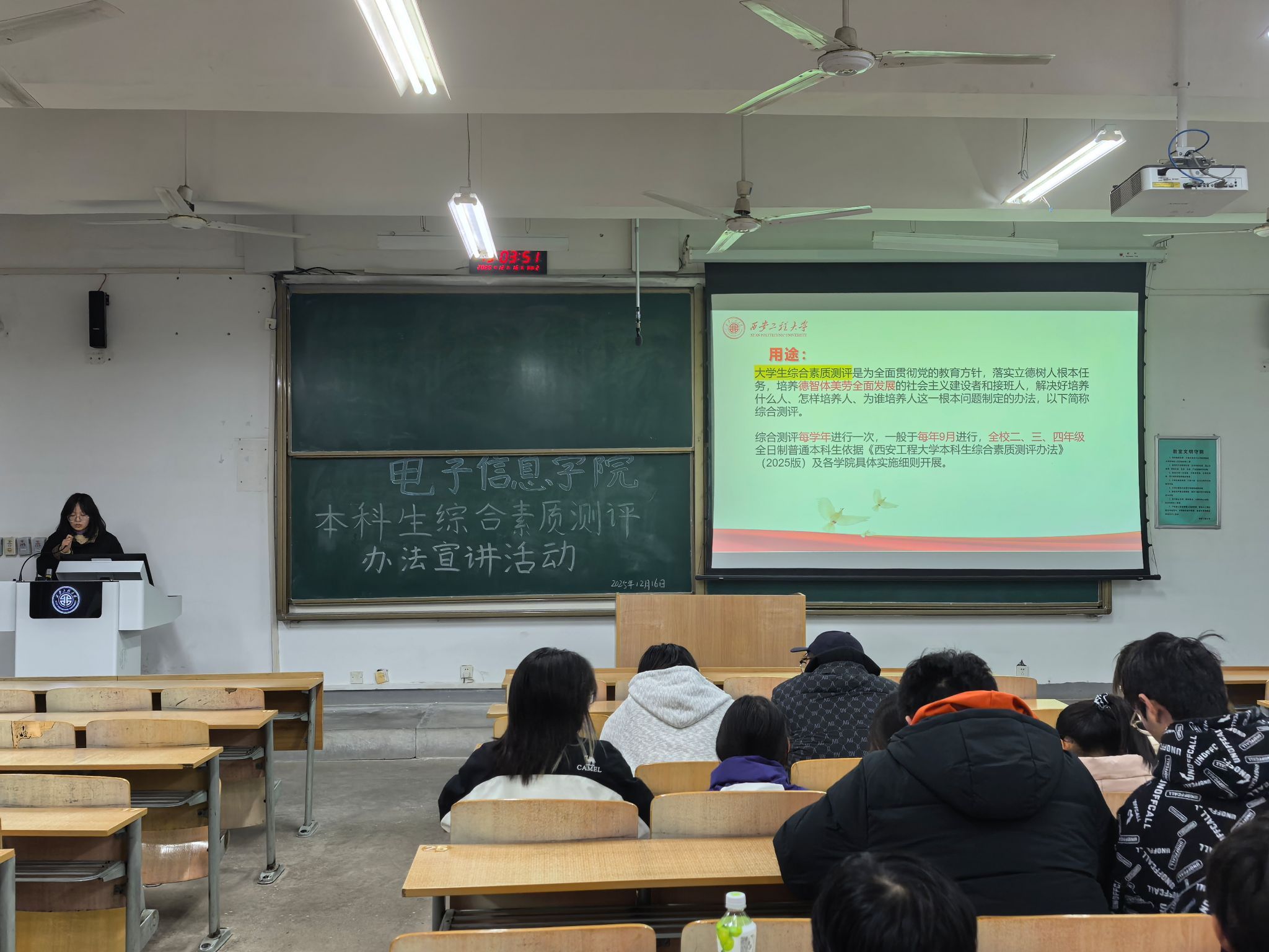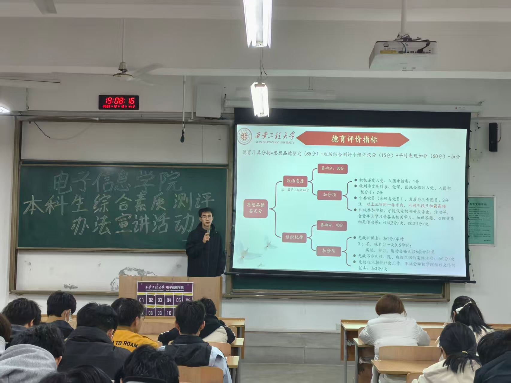自12月4日以来,电子信息学院精心组织、创新形式,开展了一系列多层次、广覆盖的本科生综合素质测评办法宣传教育活动,为后续测评工作的公平、公正、有序开展奠定了坚实基础,为2025级新生科学规划大学生活提供遵循。