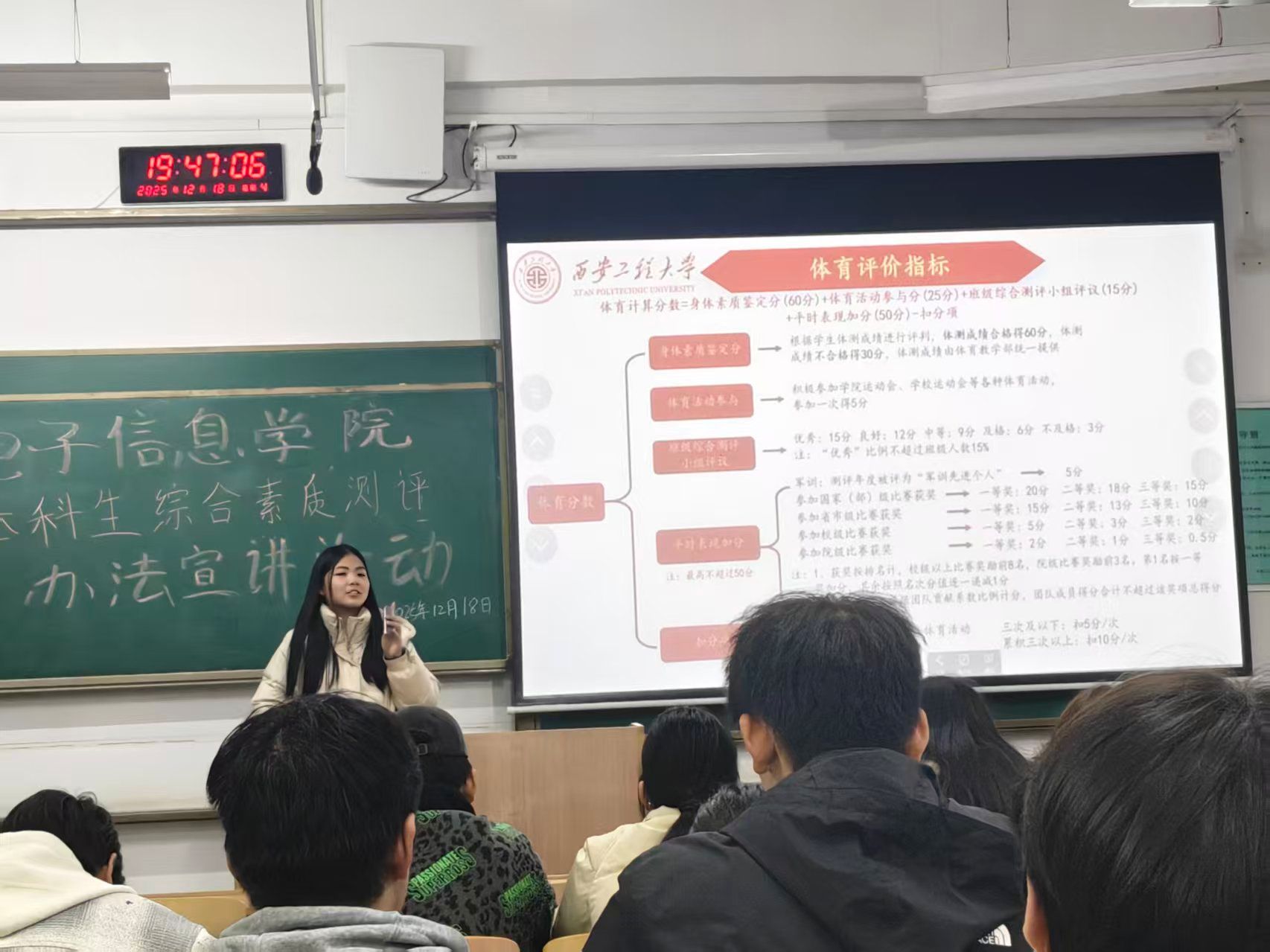 学院坚持“教师先学、骨干先行”,夯实政策宣讲基础。通过召开学生工作专题会议,组织全体辅导员及部分三全育人导师团导师深入学习《西安工程大学本科生综合素质测评办法》,准确把握政策精神与核心要求。同时,重点培养学生骨干,使其成为班级政策解读的“第一解说员”。12月5日,学院资助辅导员组织开展“资助政策宣传大使模拟试讲”,从宣讲内容、表达技巧、现场互动等方面进行指导与点评,助力学生宣讲员提升业务能力。