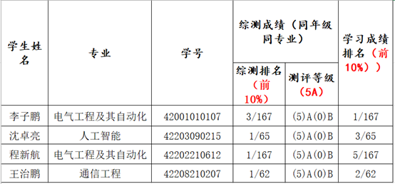 根据学校《关于做好2023-2024学年国家奖学金评审工作的通知》要求,按照《关于做好电子信息学院2023-2024学年国家奖学金评审工作的通知》具体要求,经学生个人申请、年级推荐、学院资助工作领导小组初审、报学院党政联席会通过,拟推荐电气工程及其自动化专业李子鹏等4名同学为我院2023-2024学年本科生国家奖学候选人选。