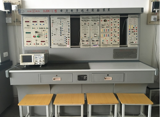 电力电子技术实验室是电气工程及其自动化的专业实验室之一。实验室面积约为50平方米。实验室主要实验设备包括:电力电子技术实验台6套,60MHz示波器8台、10MHz单通道信号源8台。共开设课内实验项目6个,实验项目基本上属于单纯的验证性实验。实验室主要面向电气工程与自动化专业,开设电力电子技术实验教学工作,实验室年接待学生实验约3600人·时,实行开放式管理,同时接待学生毕业设计及各类课外竞赛活动。