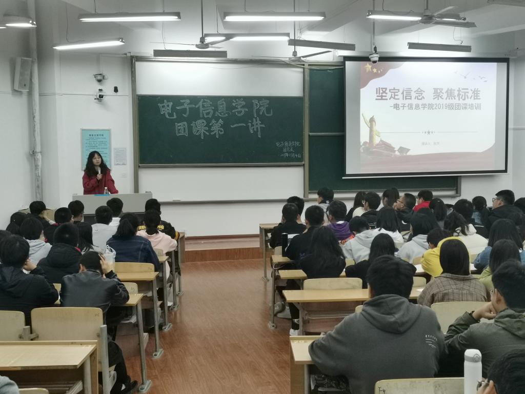 为增强团员政治学习兴趣,提高团员思想理论水平和政治素养,加强团员队伍建设,推动团学基层组织建设和团学工作开展,电子信息学院于11月4日-11月8日在临潼校区教学楼B137教室开展电子信息学院2019院级团课培训。本次团课一共分为三讲,19级辅导员张天、团总支书记杨松然、18级辅导员周梦宇分别担任主讲人。电子信息学院团学科全体干事及19级各班班委参加此次培训。