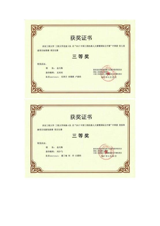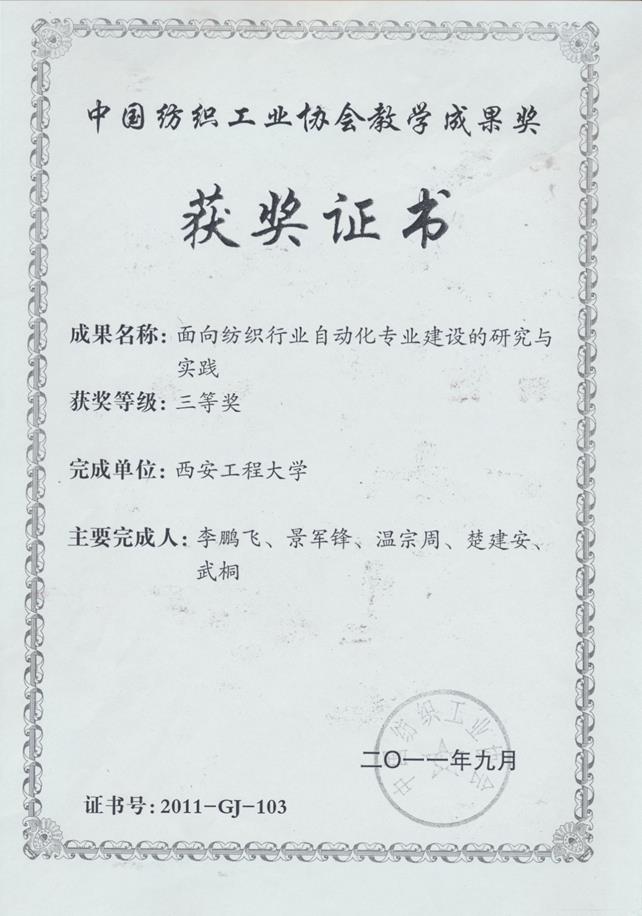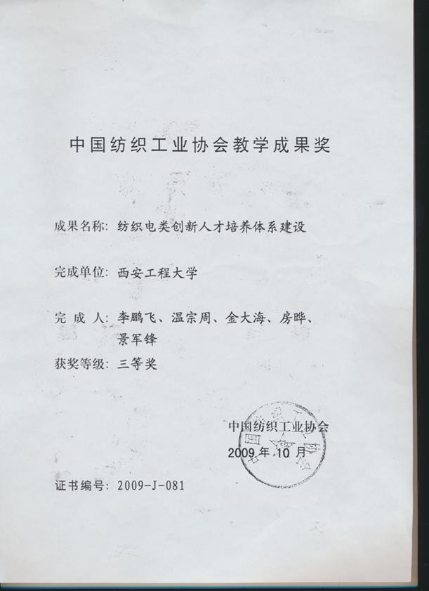 中国纺织工业协会教学成果三等奖 |