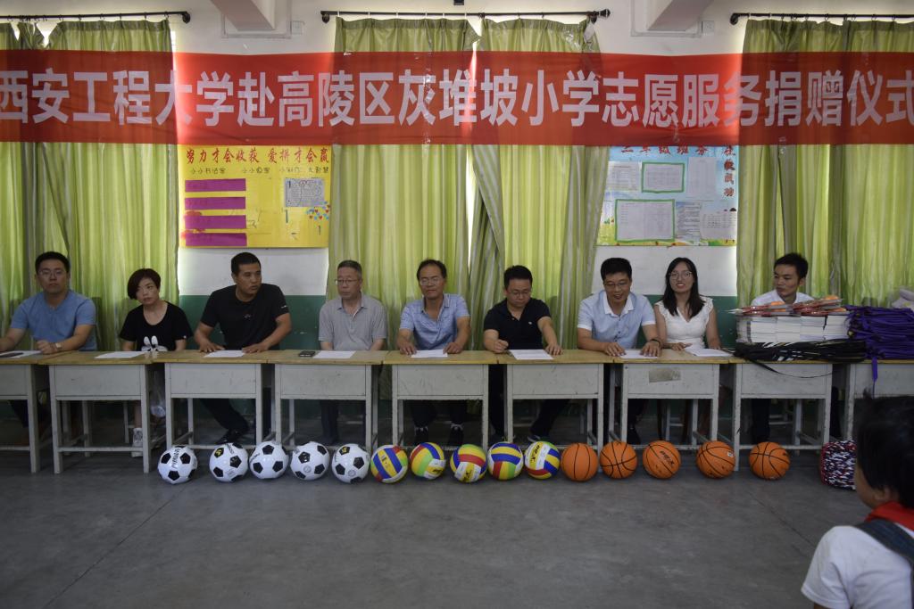 7月22日中午,西安工程大学电子信息学院“赴高陵区灰堆坡小学志愿服务捐赠仪式暨开幕式”于西安市高陵区灰堆坡小学隆重举行。灰堆坡村主任李平、灰堆坡小学校长冯新波老师、教导处主任王玲老师、西安工程大学电子信息学院党委书记杨恩科、党委副书记刘许、团总支书记刘妍萍、老师赵立涛、黄木委、周梦宇等嘉宾出席了本次活动。