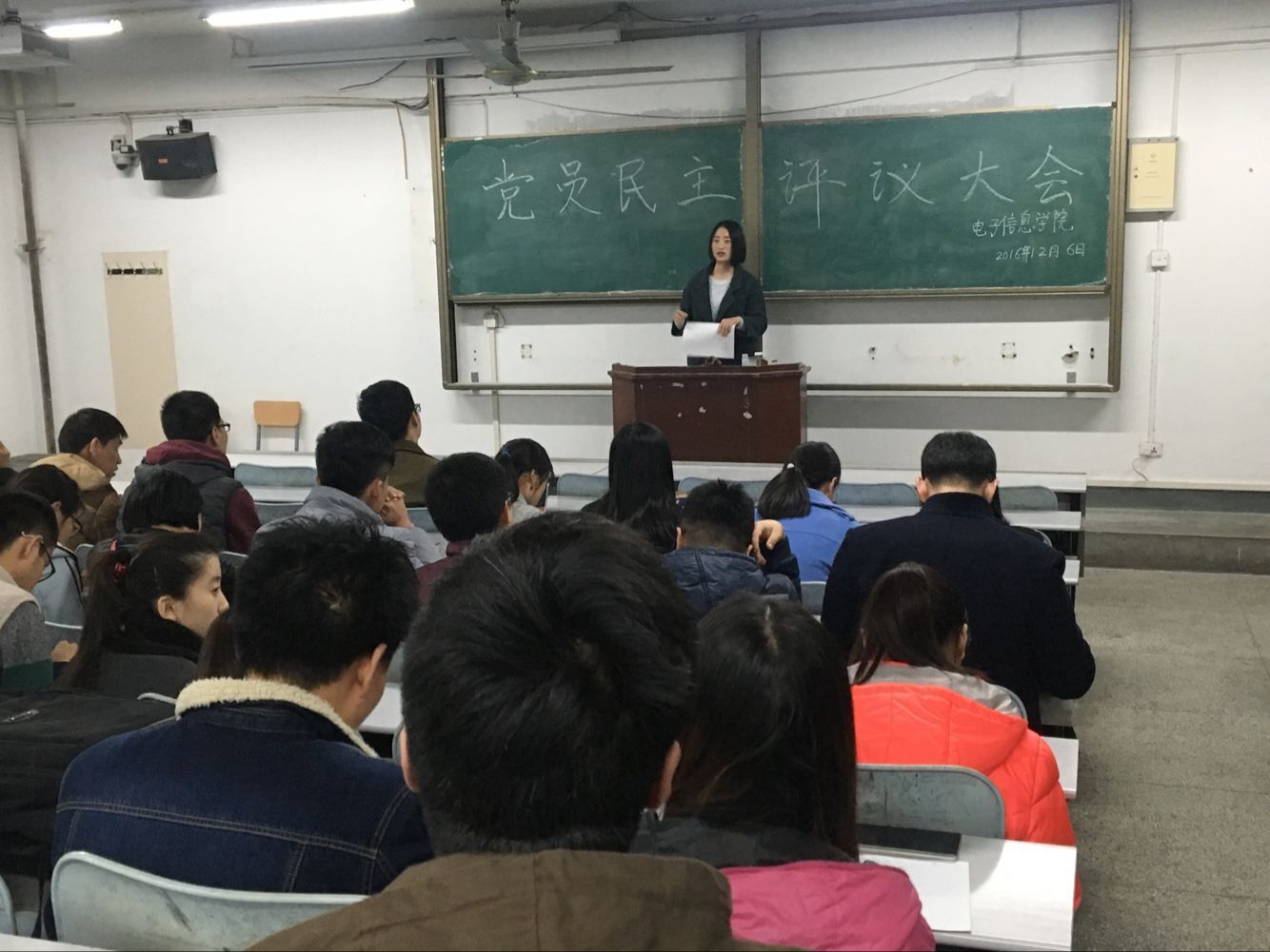 为进一步深入推进“两学一做”学习教育,贯彻全面从严治党工作要求,保持党的先进性和纯洁性,切实发挥党员先锋模范作用和党支部战斗堡垒作用。根据校党委组织部下发的《关于开展2016年民主评议党员工作通知》文件要求,电子信息学院所属的17个支部于12月5日至8日顺利完成党员民主评议。学院党政领导干部均以普通党员的身份参加了支部的民主评议。