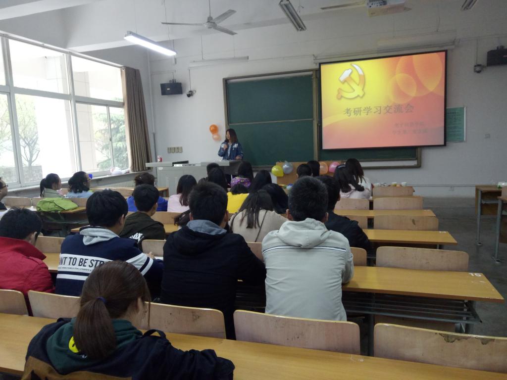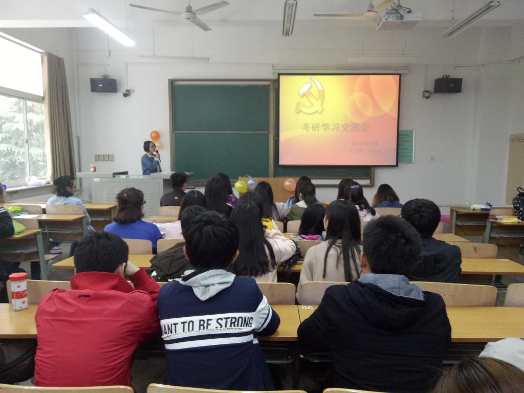 2017年4月7日下午,电子信息学院学生第二党支部在A栋102教室举办了主题为“学榜样、树目标、正心正己”的考研学习经验交流会,2016级辅导员刘风萍、二支部所有党员、2014级准备考研深造的同学及2013级已考入“211”高校研究生的优秀学长学姐,共80余人参加会议。本次交流会由二支部唐娟同志主持。