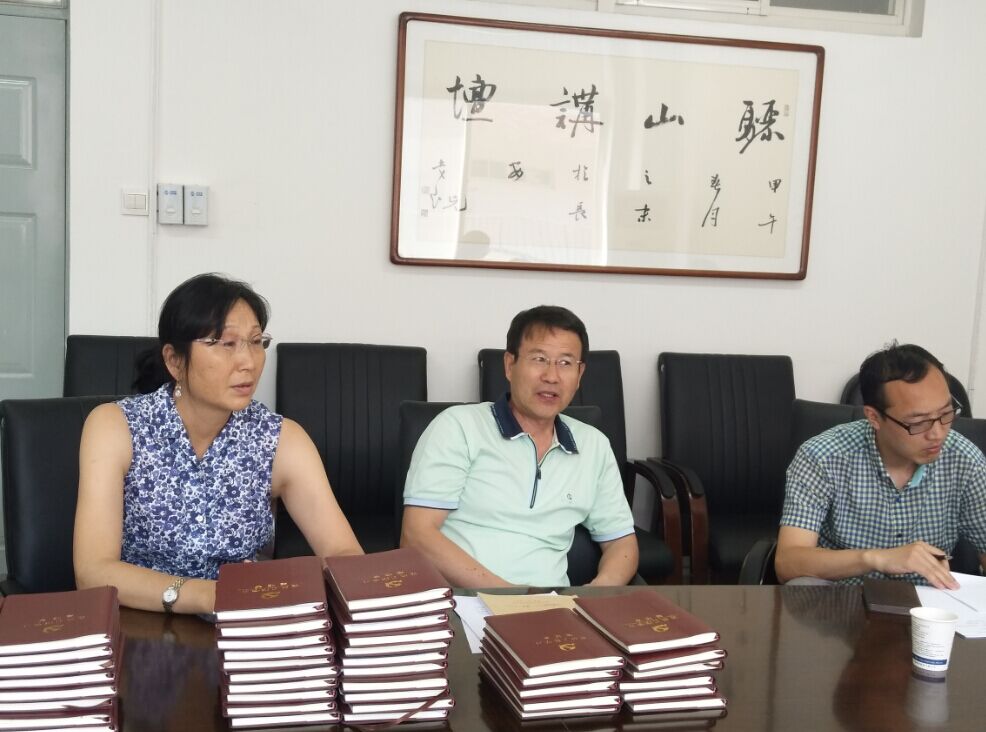 2017年6月22日下午,在电信楼414室,管理学院党委书记邢瑞芳、马克思主义学院党委书记宁立功、理学院党委书记谢明、计算机与科学学院党委副书记周波督促检查学院“两学一做”学习教育情况,学院党委书记孙晓宁、党委副书记杨建军及学院学工办主任朱宇军陪同检查。