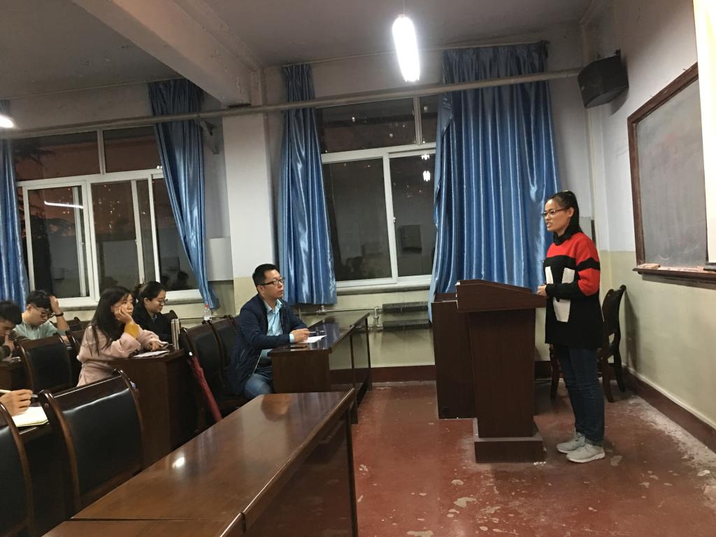 会上,首先支部书记段佳雷老师初次面向支部成员,做了自我介绍,并且对今后工作的展开作出了指导。提出:一是,对于任何党内事务,学习生活上的问题都可以在支部成员之间展开自由讨论;二是,作为一名研究生党员,我们应主要培养自己独立研究并解决问题的能力,不忘初心去坚持,直至自己的科研目标落实。