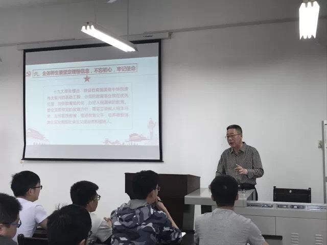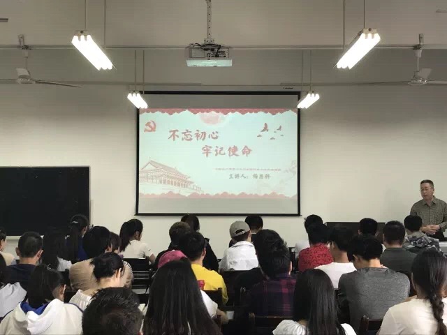 为学习宣传贯彻党的十九大精神,2018年5月3日,在临潼校区电信楼419,电子信息学院党委书记杨恩科为70余名学生党员讲了主题为“不忘初心、牢记使命”的党课。