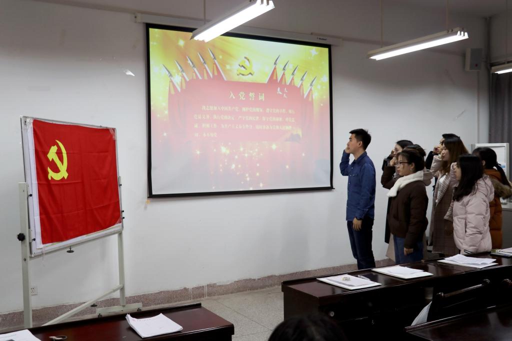 随后,在支部副书记王君屹同志的带领下,四名发展对象面对鲜艳的党旗,高举右手庄严宣读自己对党忠诚的誓言,表达了为党的事业奋斗终身的决心。