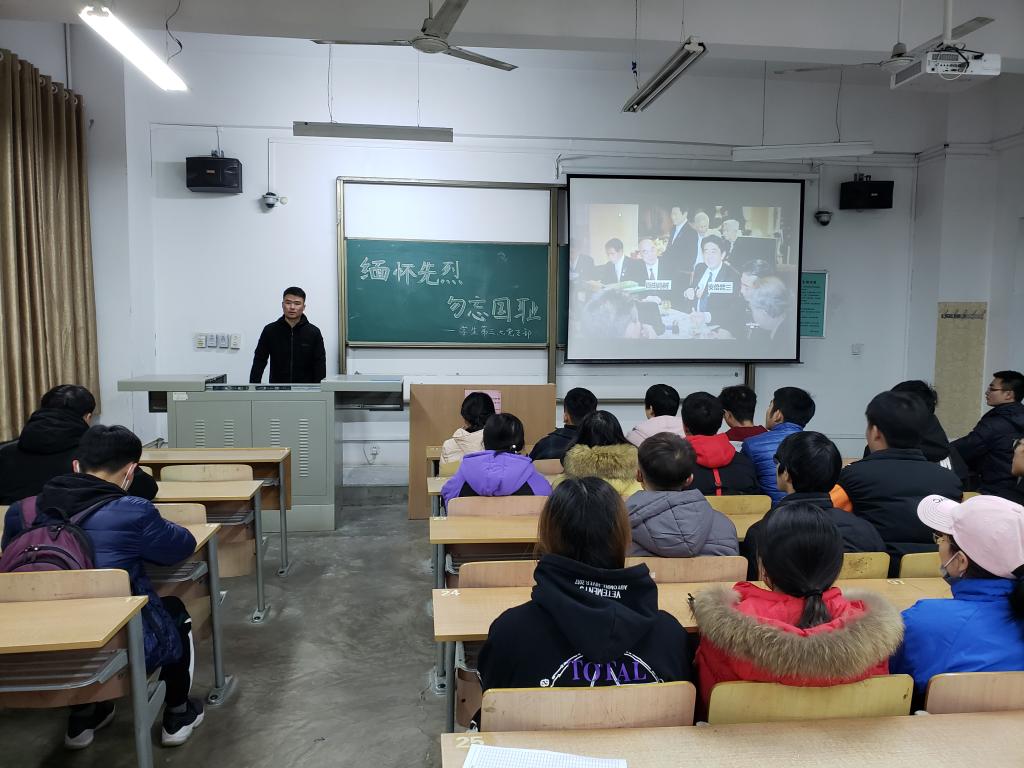 时值国家公祭日,为了悼念南京大屠杀死难者和缅怀同胞,牢记历史勿忘国耻,弘扬中华民族爱国主义和团结奋斗的精神;电子信息学院学生第三、第七党支部于12月11日晚,在A-126教室联合举办观看纪念南京大屠杀影片《南京》的主题党日活动。