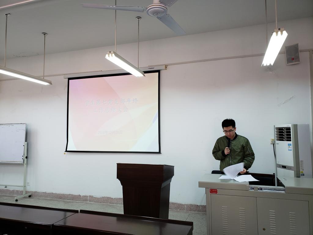2018年12月28日上午,电子信息学院学生第七党支部在电信楼419会议室召开支部年终总结大会暨党员民主评议大会,支部全体党员参加,会议由支部书记苏雪平同志主持。