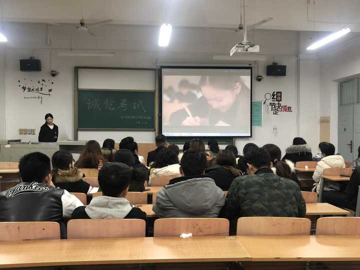 活动开始,徐子欣对此次活动的主题进行了简单的阐述,并提出“诚信考试有多重要?”这一问题,供大家进行交流和讨论,使同学们认识到诚信考试的必要性。之后,通过视频短片的形式进行了介绍,并展示相关的新闻报道,让大家全面了解了在考试中哪些行为是不诚信的,认识到考试作弊的严重后果,警醒大家不要触犯。