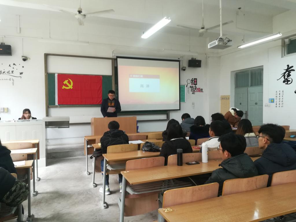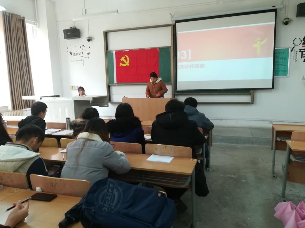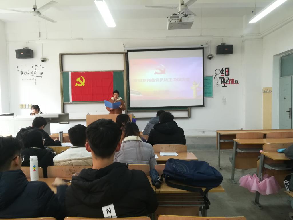 2018年12月2日中午13:00,西安工程大学电子信息学院学生第三党支部在教学楼A124召开第53期预备党员转正决议会议。党支部书记曹智宇、支部正式党员、预备党员、发展对象等29名同志出席会议,本次会议由支部副书记马小雅同志主持。