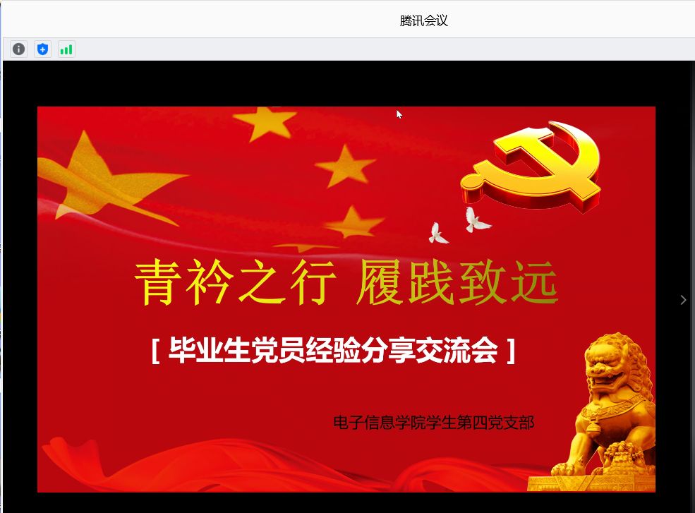 为进一步完善支部建设,更好的传承优秀力量,充分发挥优秀毕业生党员模范带头作用,2020年7月4日晚,电子信息学院学生第四党支部通过“腾讯会议”成功召开了以“青矜之行履践致远”为主题的优秀毕业生党员交流分享会。支部全体党员和部分积极分子共同参加了本次主题活动,活动由支部副书记吴成同志主持召开。