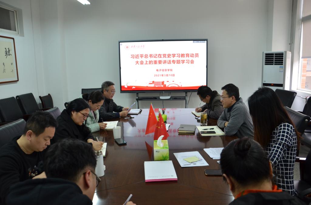 3月10日下午2:30,电子信息学院党委理论学习中心组在电信楼414会议室,围绕习近平总书记在党史学习教育动员大会上的重要讲话,举行集中研讨学习。会议由学院党委书记杨恩科主持,学院党委理论学习中心组全体成员参加学习。