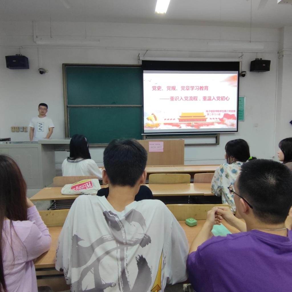 为扎实开展党史学习教育,强化党员党性修养,深入践行支部“五个一”献礼行动,2021年5月17日至2021年5月23日,电子信息学院学生第二党支部开展了“重识入党流程,坚定入党初心”主题党日活动。