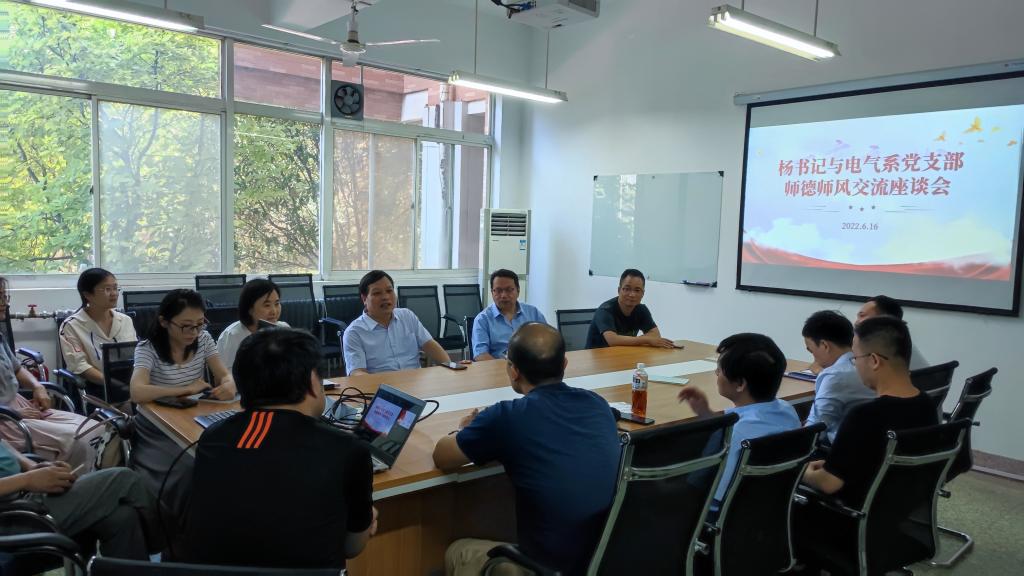 2021年6月16日上午,电子信息学院党委书记杨友谊与电气工程系党支部党员在临潼校区电信楼102会议室开展主题为“不忘初心行师风,牢记使命守师德”师风师德交流座谈,电气系支部全体党员参加此次座谈。