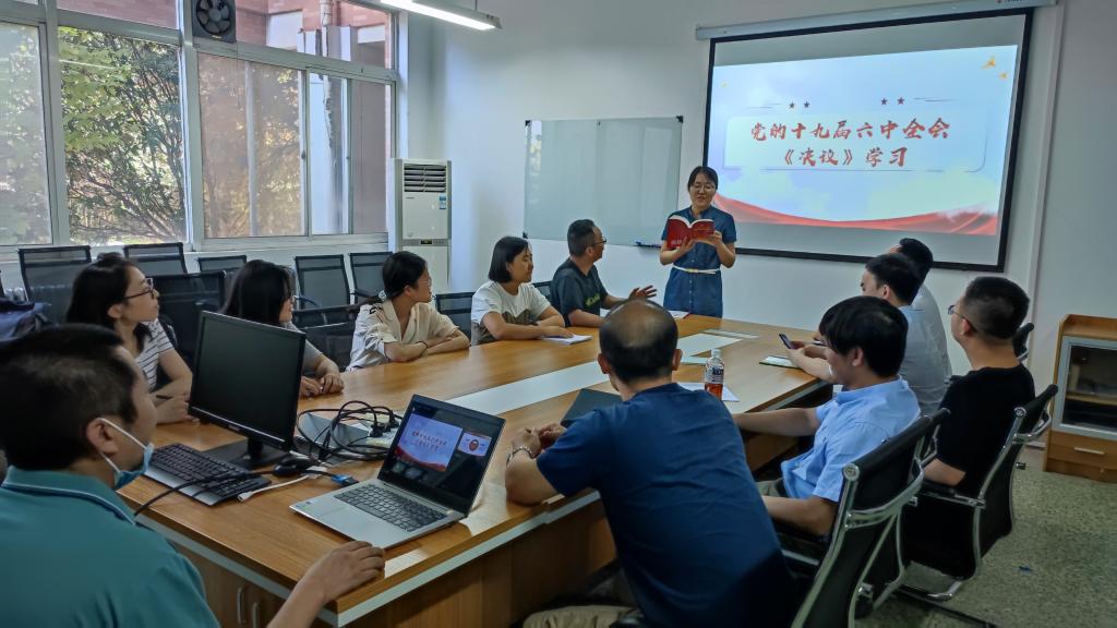 最后,支部书记组织全体党员教师开展了关于党的十九届六中全会《决议》与2022年第六期《求是》杂志的学习。