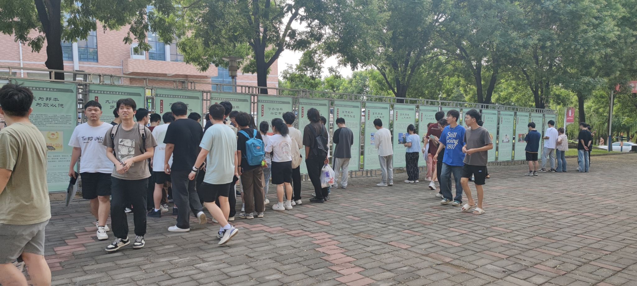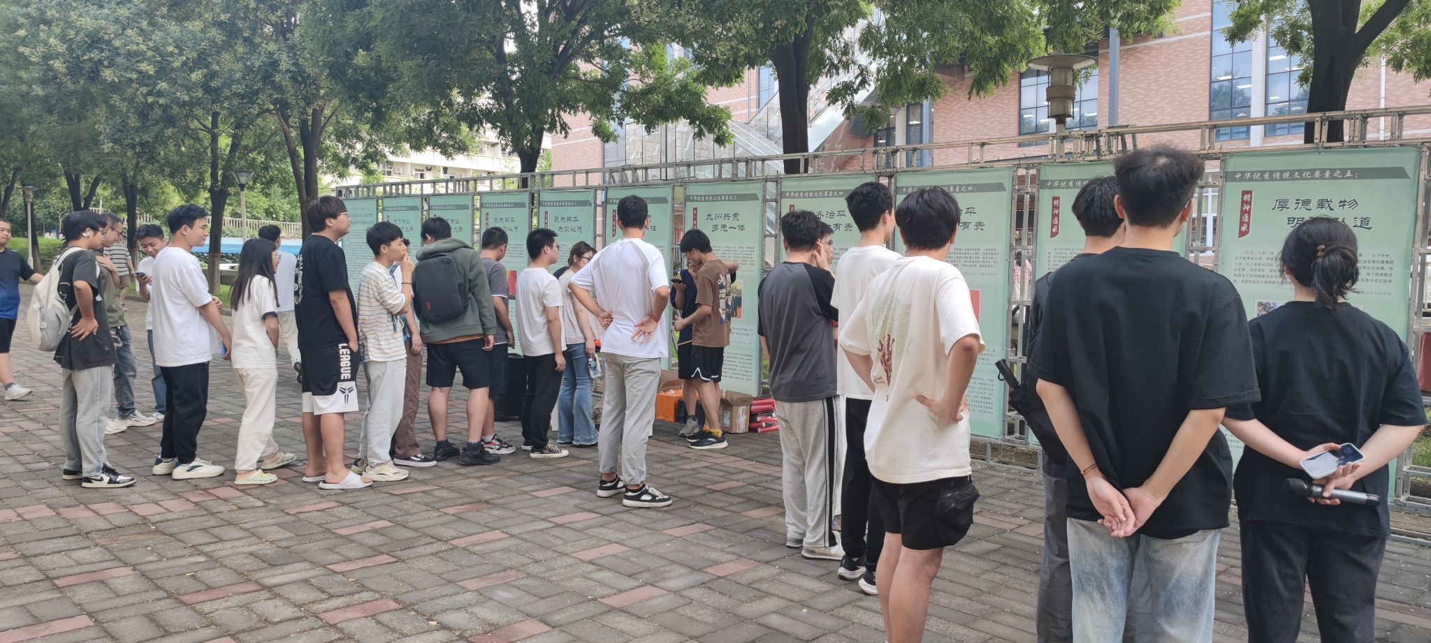 2023年6月至7月,我校在临潼校区举办“执古御今 持经达变”学习贯彻习近平文化思想、传承弘扬中华优秀传统文化展。本次展览由党委宣传部主办,电子信息学院党委承办。7月1日,举办了展览相关互动活动,同学们在校园里自信十足、铿锵有力地诵读经典引文相关内容,让习近平文化思想和中华优秀传统文化的魅力在校园绽放。