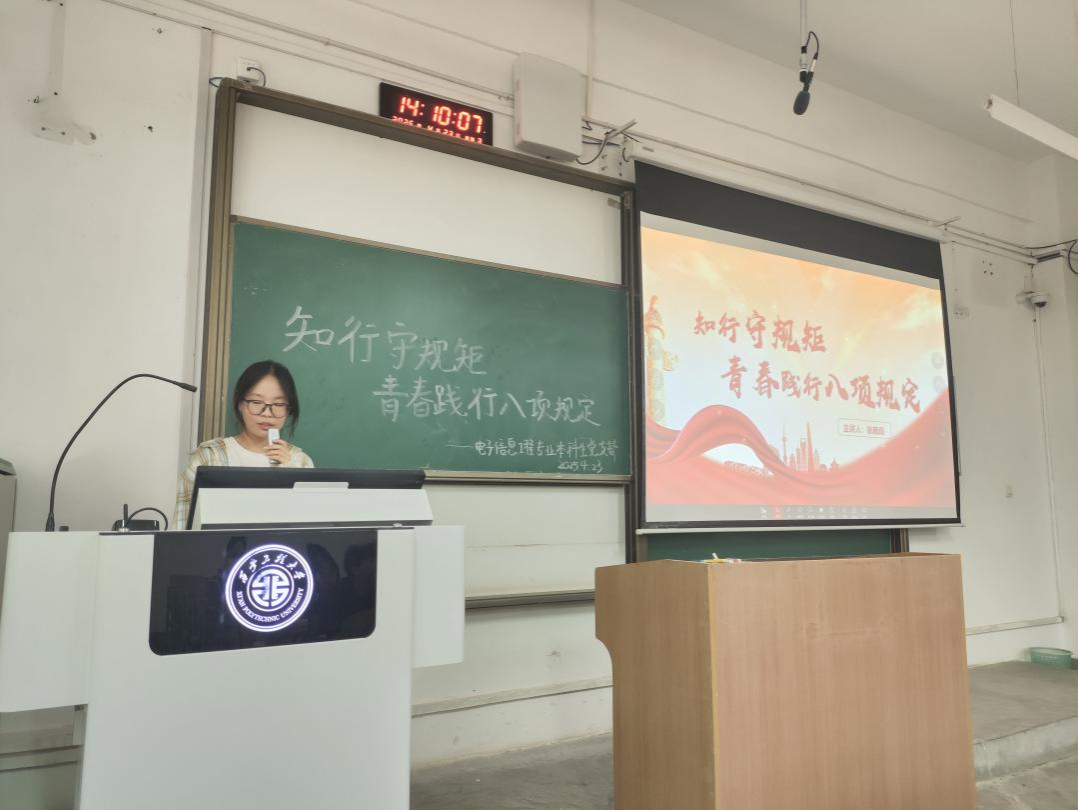 通过此次主题党日活动,进一步强化了支部成员的纪律意识和优良作风。今后,支部将继续坚持以习近平新时代中国特色社会主义思想为指导,深刻领会中央八项规定精神的内涵和要求,把学习成效转化为服务同学的实际行动,增强自律意识和服务群众能力,以青春之我诠释新时代党员的使命担当。(撰稿:王德利 ;审核:杨友谊)