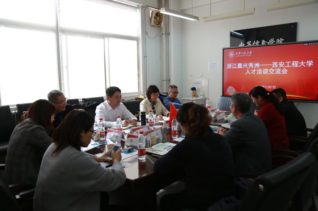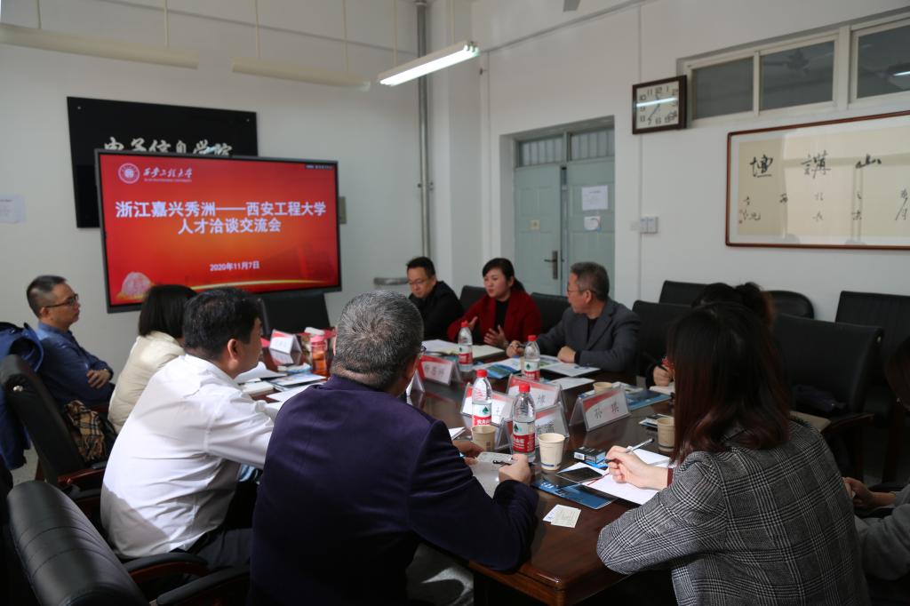 秀洲区政协副主席孙薇对秀洲区基本情况以及人才政策引才需求进行详尽的介绍,她说道:“我校的纺织专业、自动化专业的结合等设置具有较强的经济发展针对性,能够较为精准地服务于区域经济发展,为企业提供专业技术人才。”;双方代表还就相关教学模式,如课程共建,进行了谈论与交流。校企双方均表示应多联系交流,并期待能开展更深度合作。