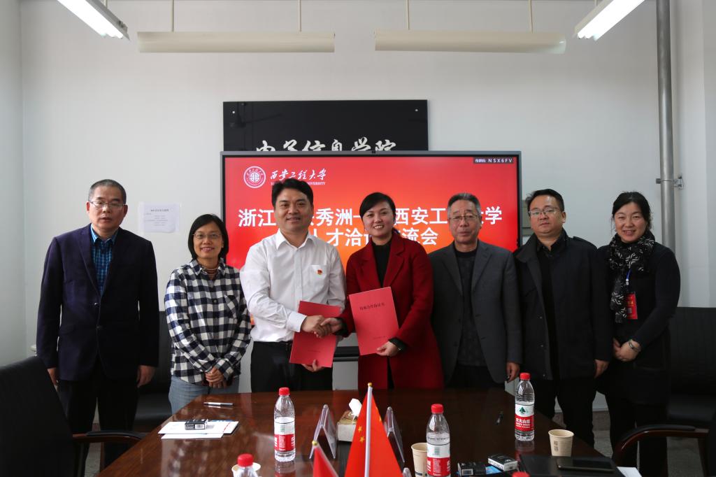 2020年11月7日,正逢我校召开2021届毕业生冬季大型综合类招聘会,200余家公司参与此次招聘会。与此同时,为进一步了解用人单位岗位人才新需求,使我校各类专业设置及改革更适应市场需求,探求校企合作新路,实现精准办学,我校与浙江嘉兴秀洲区于电子信息学院楼414室开展人才交流洽谈活动。秀洲区政协副主席孙薇、区人力社保局局长王其方、区政协经济委副主任宋新征、区人社局人才交流中心主任董根土、区人社局人才开发科科长范瀟瀟、区人社局人才开发科科长孙琪,我校招生就业处处长张冬梅、电子信息学院党委书记杨恩科、电子信息学院党委副书记刘许参加本次人才交流洽谈会。
