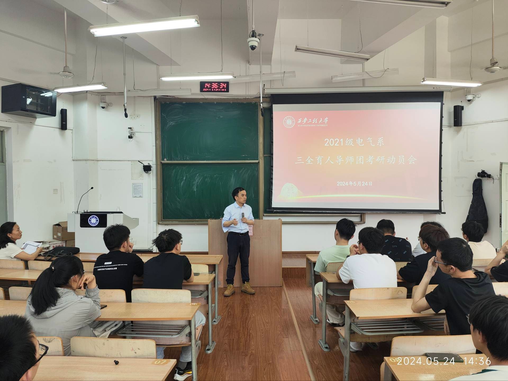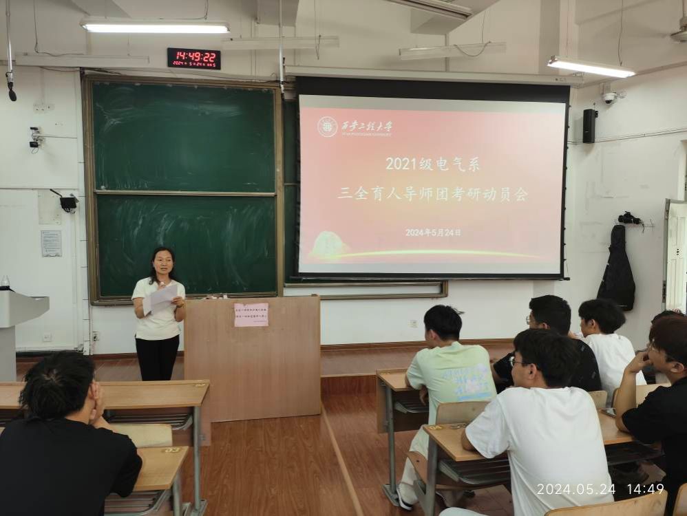 5月24日,电子信息学院2021级电气系三全育人导师团在临潼校区教学楼B-135教室召开了考研动员会,系部副主任田毅、专业教师张永宜及导师团全体学生参加了本次动员会,会议由2021级辅导员曹智宇主持。