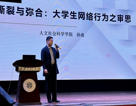 孙迪为同学们列举了关于网络谣言和网络诈骗的相关案例,以案释法,以案普法,从中引出大家对大学生网络失范行为的思考。这些案例贴近学生生活,让同学们在震撼之余,也深刻认识到遵守法律、保护自己的重要性。他结合当今法律法规,深入浅出的解读了国家对网络失范行为一些相关政策及惩罚措施。希望同学们能够遵守网络行为规范,力争做一名学法、知法、懂法、守法、用法的大学生,共同创建和谐校园。