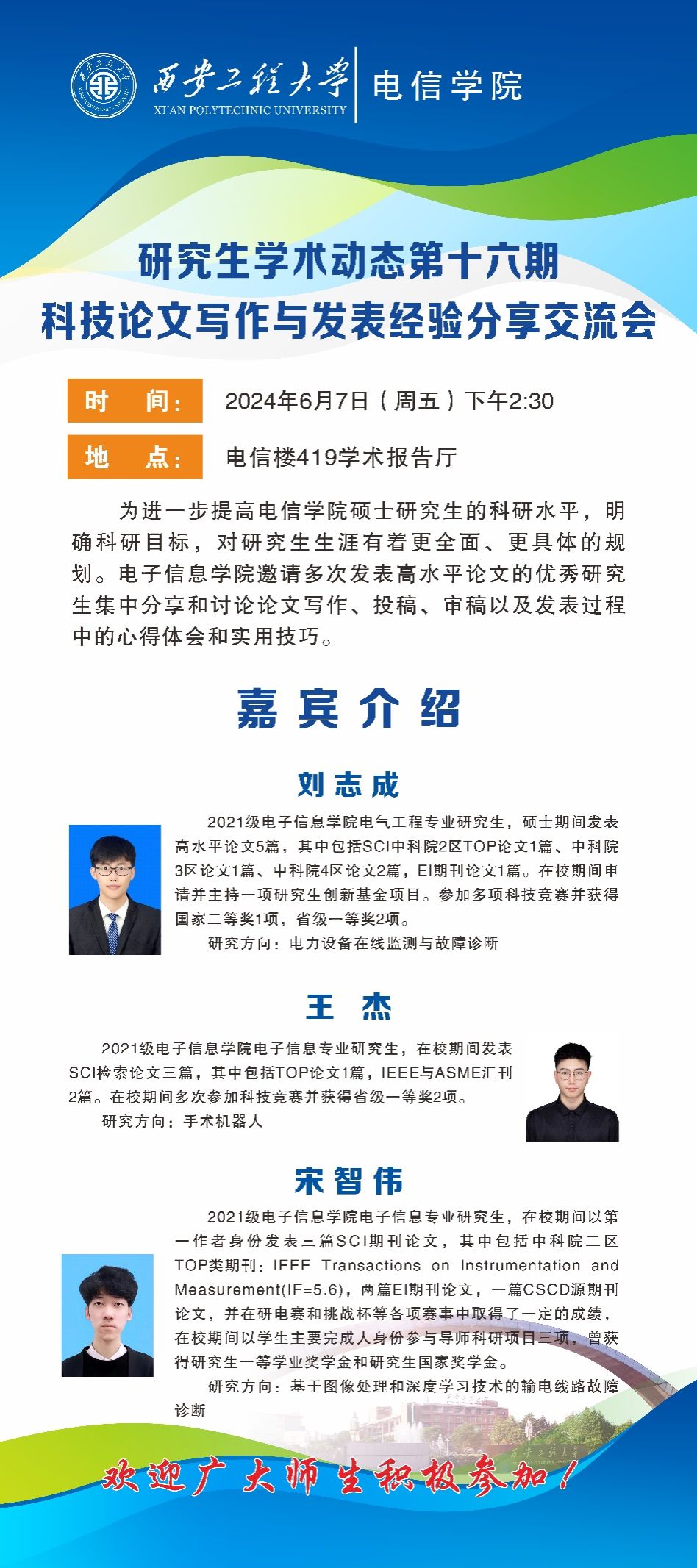2021级电子信息学院电子信息专业研究生,在校期间以第一作者身份发表三篇SCI期刊论文,其中包括中科院二区TOP类期刊:IEEE Transactions on Instrumentation andMeasurement(IF=5.6),两篇EI期刊论文,一篇CSCD源期刊论文,并在研电赛和挑战杯等各项赛事中取得了一定的成绩,在校期间以学生主要完成人的身份参与导师科研项目三项,曾获得研究生一等学业奖学金和研究生国家奖学金。
