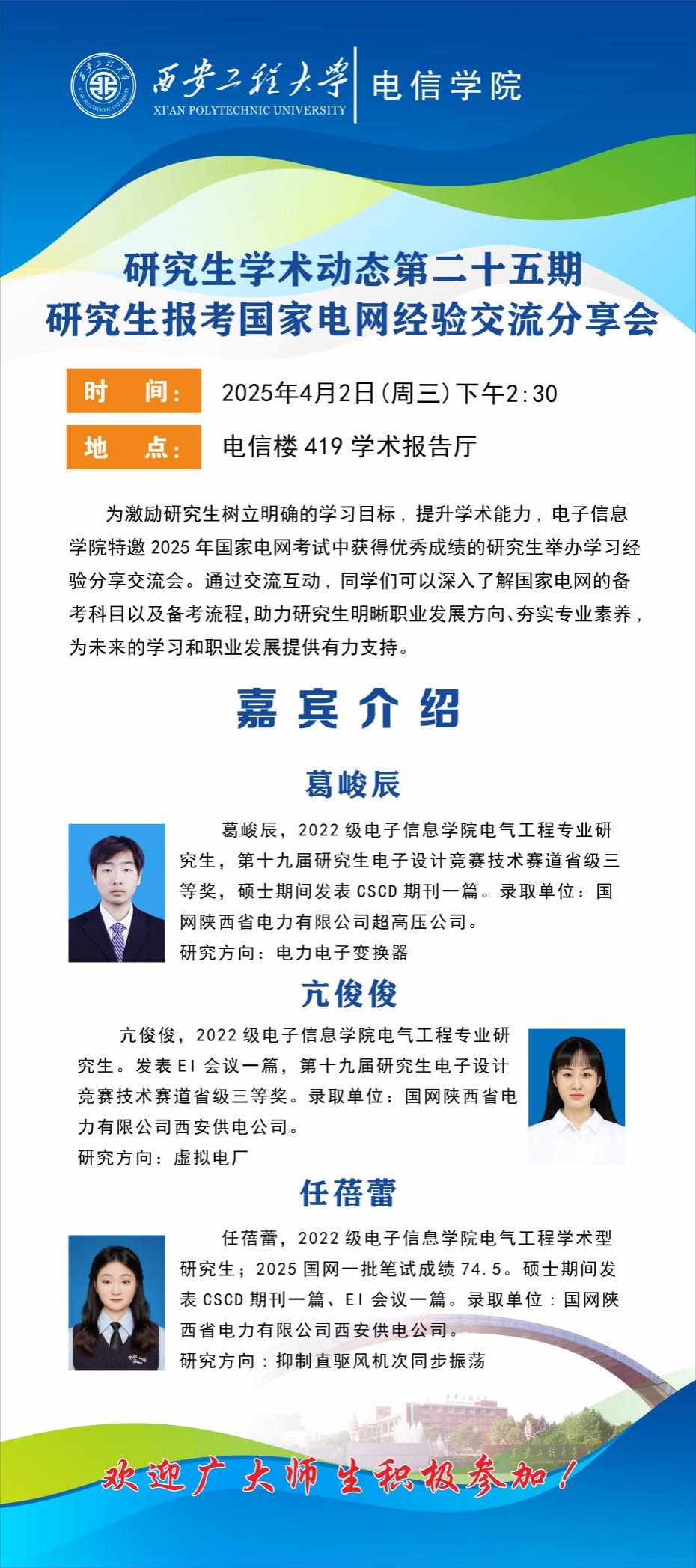 任蓓蕾,2022级电子信息学院电气工程学术型研究生;2025国网一批笔试成绩74.5,硕士期间发表CSCD期刊一篇、EI会议一篇。