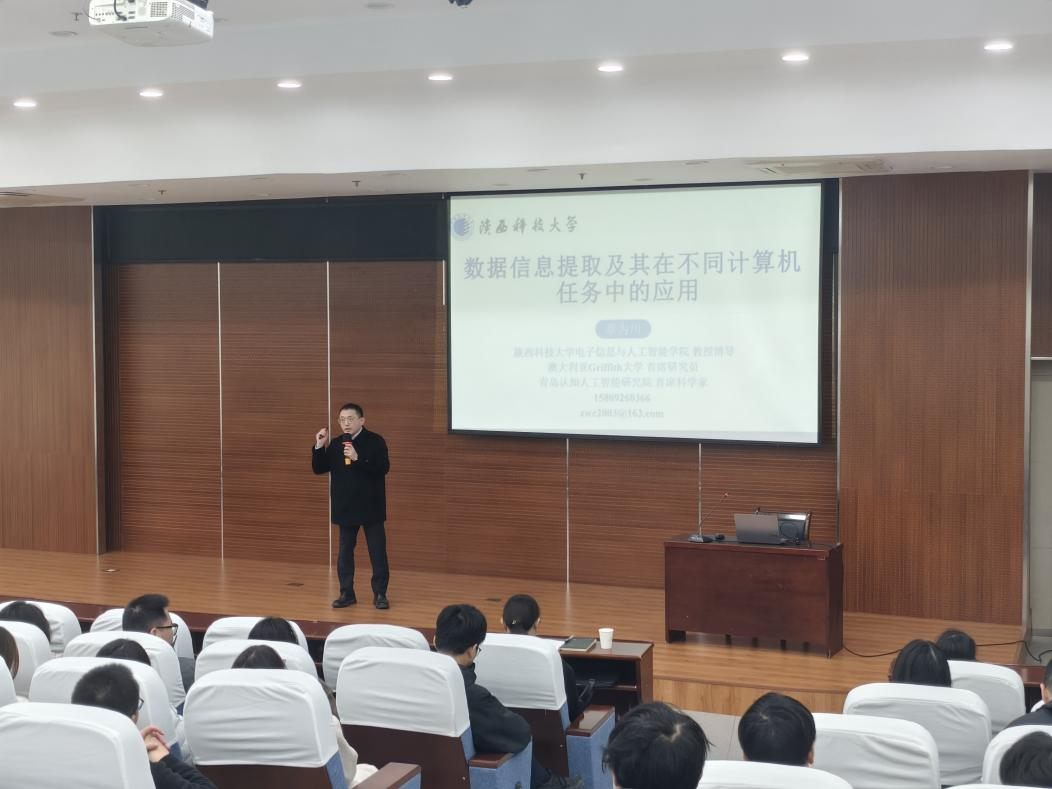 2025 年 11 月 14 日下午 2 时,电子信息学院于临潼校区图书馆二层报告厅成功举办第33期学术报告会。电子信息学院邀请陕西科技大学章为川教授以《数据信息提取及其在不同计算机视觉任务中的应用》为主题展开深度分享。电信学院副院长张蕾教授、电子信息学院青年教师、研究生两百余人参加了本次学术报告会。会议由张蕾教授主持。