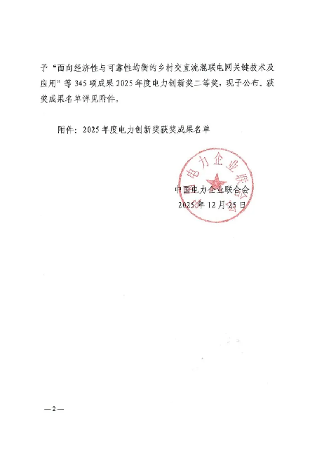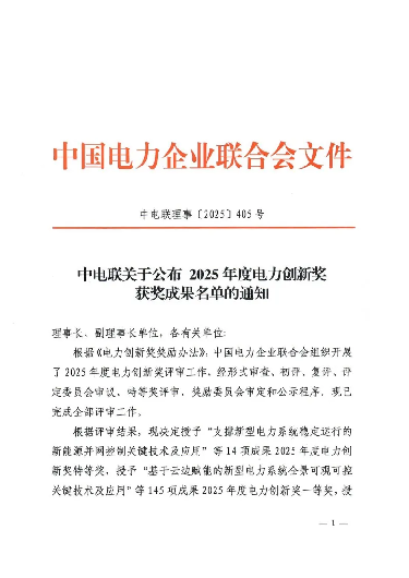 中国电力企业联合会电力创新奖是我国电力行业最具权威性的科技奖项之一,旨在表彰在电力技术领域取得重大创新突破并产生显著经济效益或社会效益的成果。此次获奖,是对杨昊副教授及其合作团队在电力装备与电网运维领域研究工作的肯定,也体现了我院在服务国家能源战略和电力行业实际需求方面所做的积极努力。